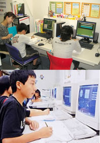 保護者の希望で算数・国語・英語を組み合わせて勉強しています。また、宿題を残ってやる子もいます。1回60分〜90分。本校は日本パソコン能力検定委員会の検定会場校です。昇級昇段試験を励みにほとんどの塾生が学習終了時刻から約10分間練習に取り組んで帰ります。実用入力技術が身につくまでキーボード基礎入力練習を学習と併用させています。